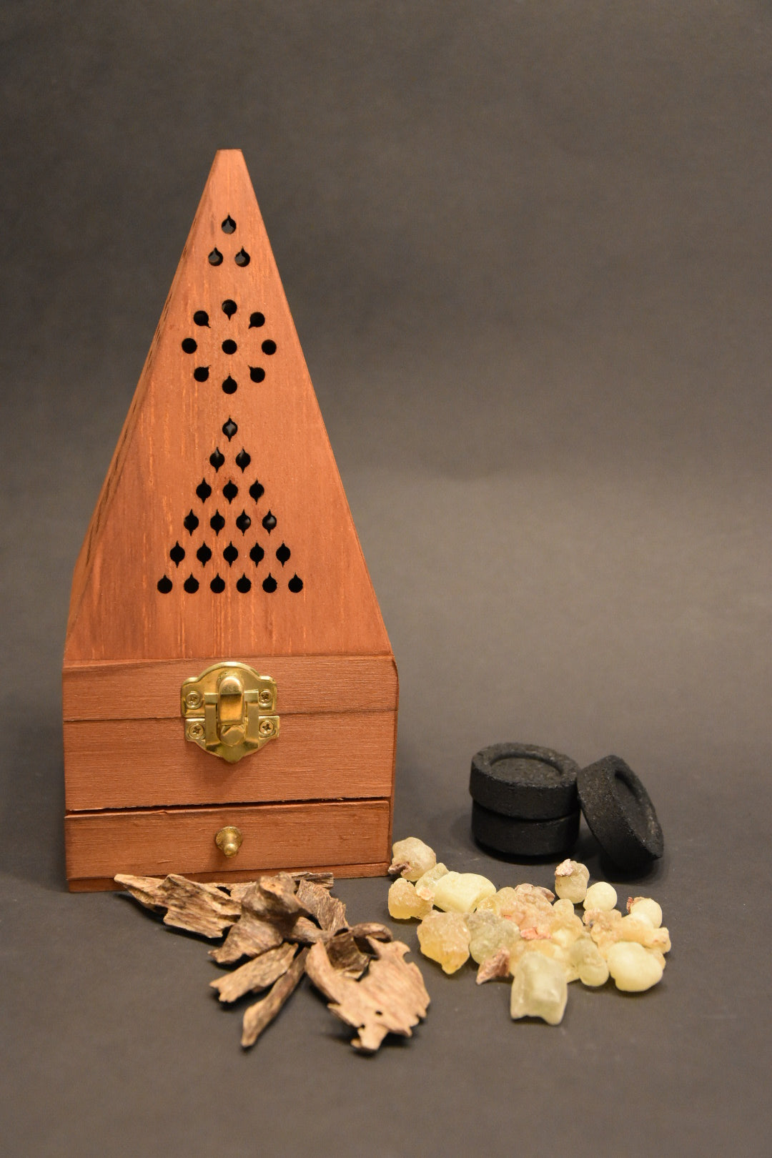 Das Starterpacket "Qasr" enthält alles für den Einsteiger in die Welt des Räuchern. Untererhalb des Gefäßes befindet sich eine Schublade. Enthalten ist: